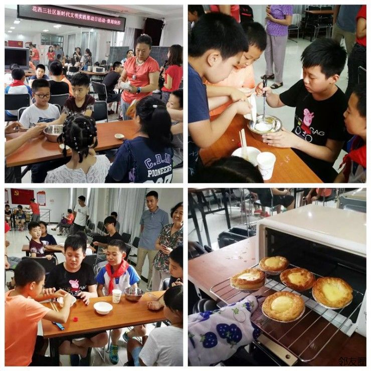 花西三社区在社区新时代文明实践站举行暑期青少年大讲堂主题活动。首先,进行乐园守护活动,帮助小朋友养成不乱扔垃圾的习惯。然后,在烘焙制作活动进行中,工作人员讲解注意事项,亲手示范蛋挞制作。小朋友们认真观看学习,投入到美味蛋挞制作中。