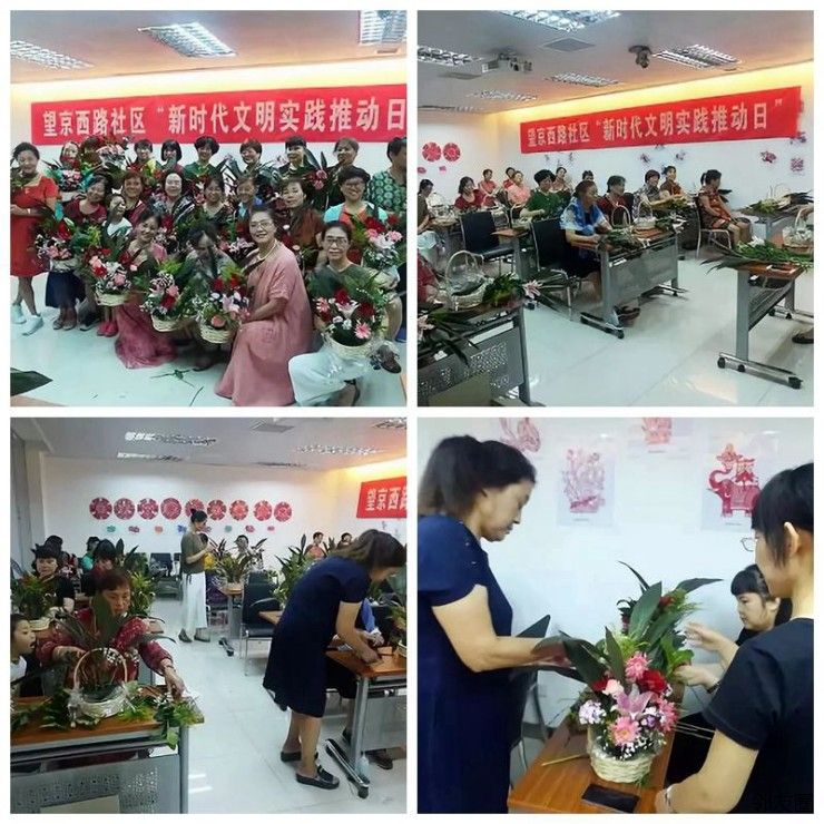 望京西路社区妇联组织开展“新时代文明实践——插花培训”活动,邀请专业花艺师讲解插花由来、花卉品种、养护方法等,并向居民演示插花技巧和方法。参加活动的居民热情投入,完成各自的创意作品。
