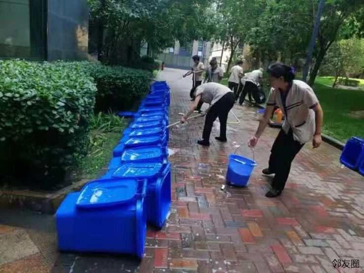 昨天雨一直下,橄榄城物业保洁工作人员冒雨清洁垃圾桶,为辛勤认真负责的人们鼓掌{:guzhang:}{:guzhang:}
