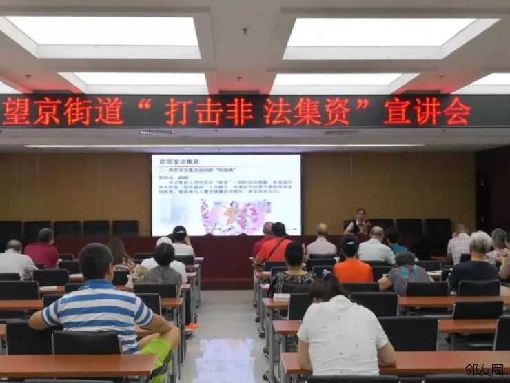 近日,望京街道平安建设办公室组织开展“防范打击非法集资”宣讲会,邀请中国银行(北京白家庄支行)讲师在办事处302会议室讲解打击非法集资相关常识。望京街道5个社区综治主任、居民代表等30余人参加。