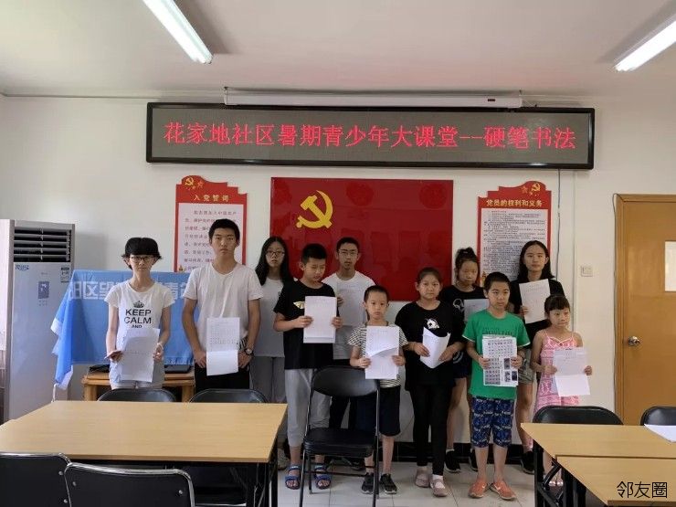 为继承和发扬传统文化艺术,丰富青少年暑期生活,花家地社区开展暑期青少年大课堂——硬笔书法活动。