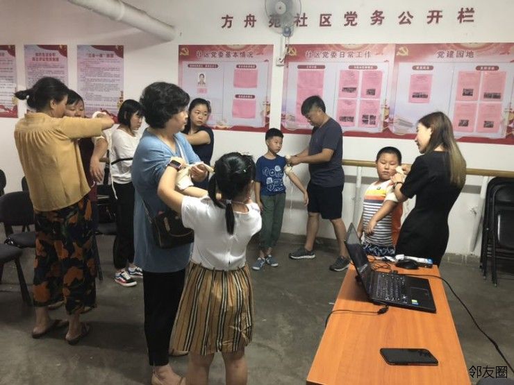 方舟苑社区居委会于8月2日上午在9号楼活动室开展了新时代文明实践站-方舟苑社区安全系列讲座。活动邀请了高级讲师为大家授课,以PPT教学和实践操作相结合的方式,生动、细致地为居民讲解了现场急救过程中包扎技能。活动吸引了很多青少年参加,大家互相演练着包扎技巧并不时地向老师询问怎样可以包的更好。在讨论中大家学会了突发情况下如何快速有效的进行包扎,增强自救互救技能。