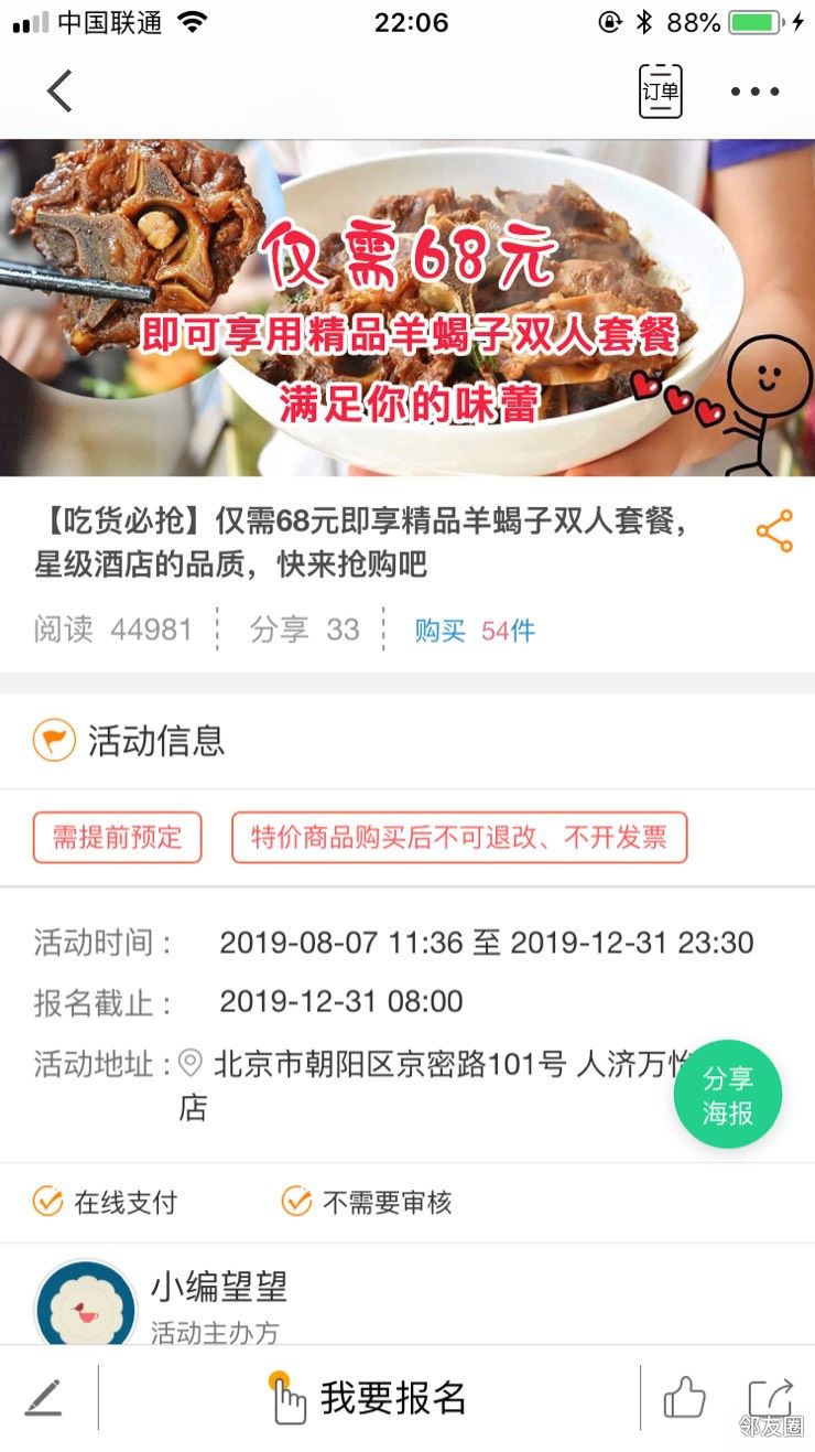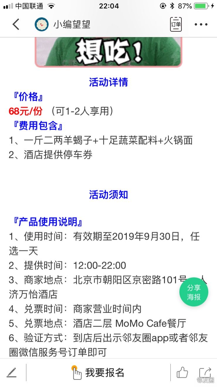 6、验证方式:到店后出示邻友圈app或者邻友圈微信服务号订单即可