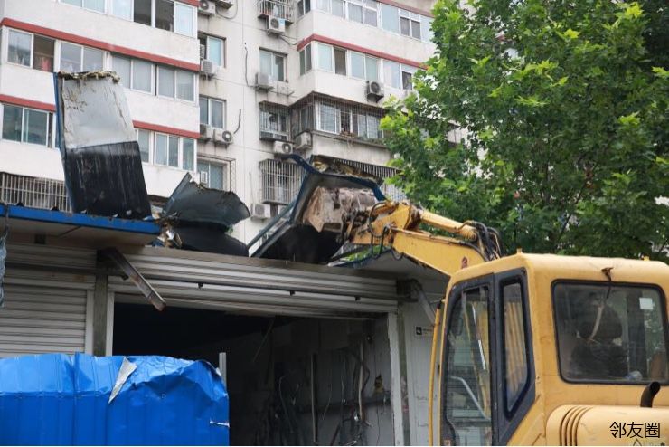 在此之前,在充分了解社区民意的基础上,综合行政执法队与花家地西里社区居干多次入户做市场负责人的思想工作,告知其现阶段整体疏整促的大形势及有关法规,同时为避免市场内商户库存货物出现损失,提前2个月制发50余份腾退告知书,每户按不同时间节点分两次进行告知。为避免相对人存有侥幸心里,综合行政执法队于7月中旬,拆除了市场所有广告牌匾并对外墙进行围挡,营造拆除氛围。经过前期大量工作,综合行政执法队于8月7日对此处市场进行拆除。