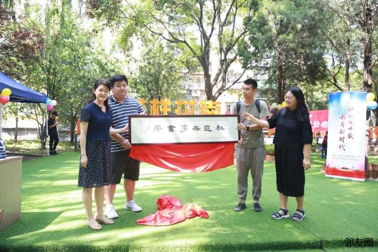 随后,张立云和张玲共同为“社区共享书房”揭牌。