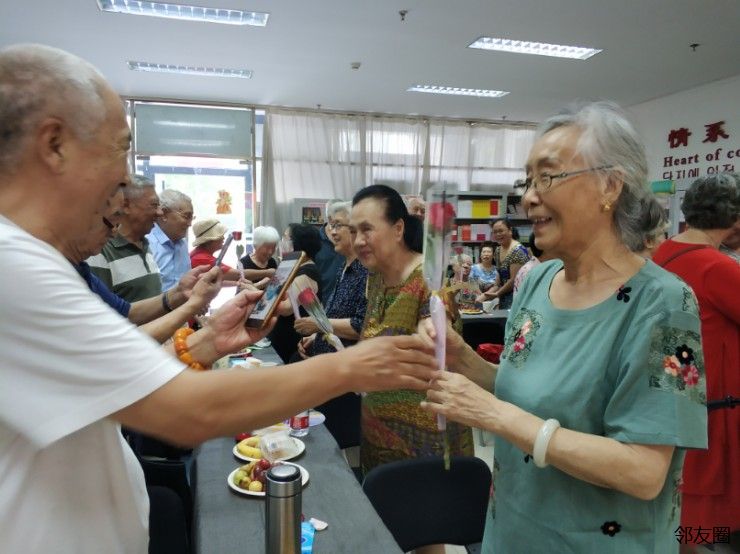 为了准备这次的活动,慰老“益”起来项目的志愿者们前期进行了入户探访,深入了解每一对夫妻的生活状况,收集了他们年轻时的照片,并为他们拍摄了五十年金婚的纪念照片,最后制作成视频在活动中播放。金婚庆典在下午3点准时开始,大家在熟悉诙谐中重温了自己的青春年华,回顾自己的成就;随后,进入七夕主题活动,共同重温爱情的美好,纪念经历了五十年的风风雨雨。第一个环节是爱的秘密:老人们互相分享爱情坚守五十年的秘密;第二个环节是爱的问答:爷爷对奶奶说”遇见你是今生最幸福的事儿”,奶奶对爷爷说“陪伴是最长情的告白,今生牵了你的手下辈子也要一起走”,爷爷们还赠送了玫瑰花给奶奶们。同时,志愿者们也献上了精彩的节目给相伴相扶的金婚夫妇们,活动的尾声,大家还为高龄夫妇赠送了七夕礼物——玫瑰鲜花饼和恩爱合照。