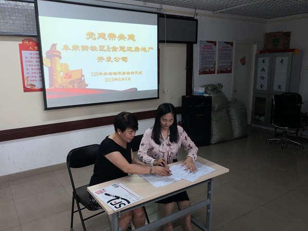 阜荣街社区书记及社区工作人员、部分党员代表、金冠达房地产开发公司副总林雅芬等出席了本次签约仪式并签署了社区共建协议。