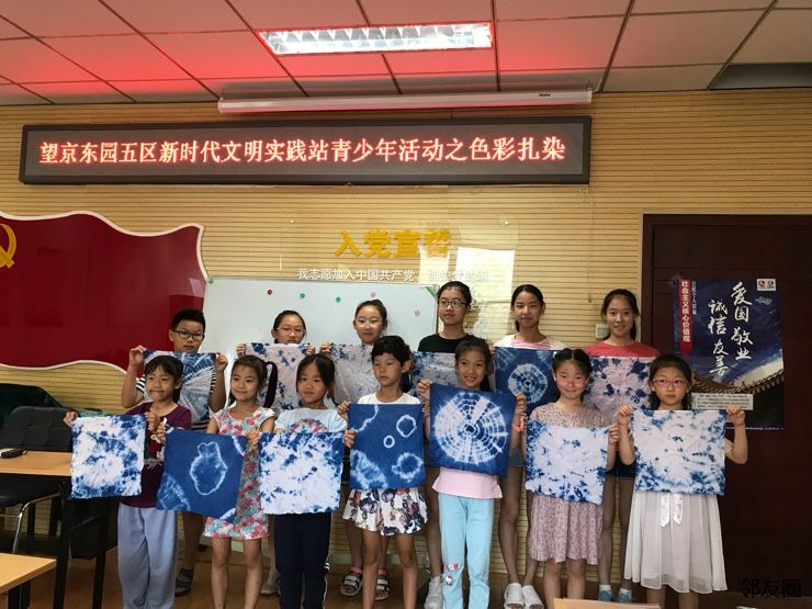 望京东西五区为丰富小朋友假期生活,增添社会实践举办文化系列活动色彩扎染,让社区小朋友更加贴近社区文化建设中来。