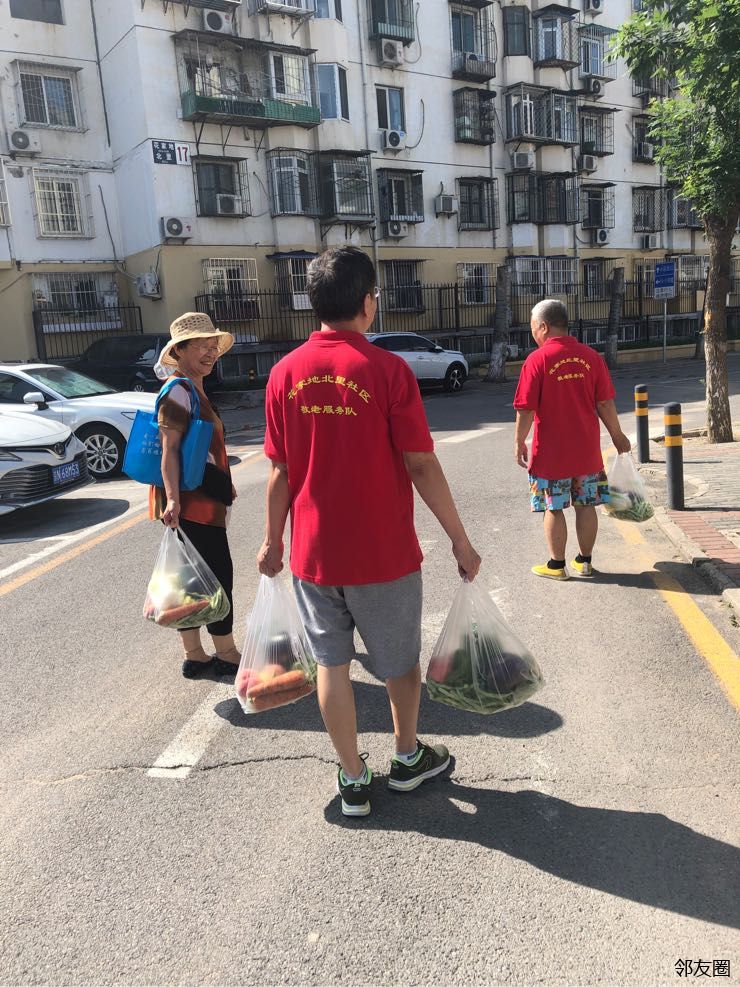 今天又是花家地北里社区敬老爱亲服务队为社区内90以上老人送菜的日子,叔叔阿姨们穿着整齐的队服拿上新鲜的蔬菜出发了。为高龄老人送上温暖,再聊聊家常,掌握社区老人的生活状况是服务队的宗旨。本可以在家享受晚年生活的他们仍然活跃在社区公益活动中发挥着余热,为他们这份认真献上我们真挚的谢意