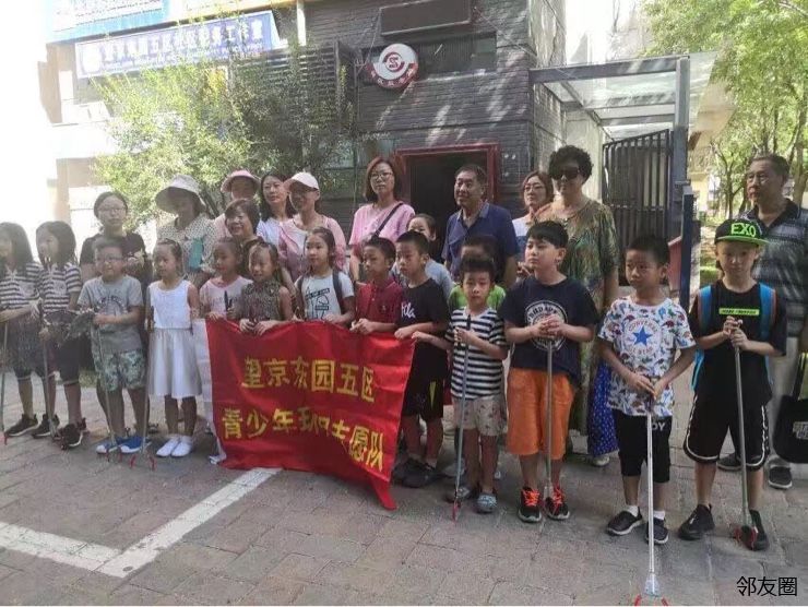 望京东园五区组织了新时代文明实践站暑期实践青少年环境卫生活动。