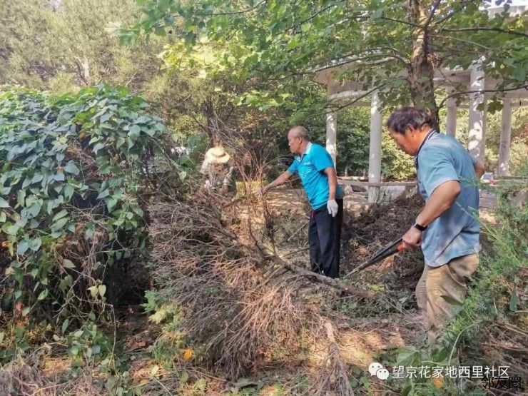 花西社区书记和全体居干,发动物业公司,率领街道保洁队,清理枯树,拔除杂草,将社区内多年无人管理的绿地整治一新,恢复了多年未见的景观,路过的居民赞不绝口。