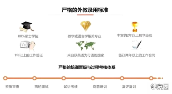 权威资质的欧美外教授课。80%硕士学位,均具备TESOL证书,正式聘用后,每一名外教都会接受至少100小时的专业培训。