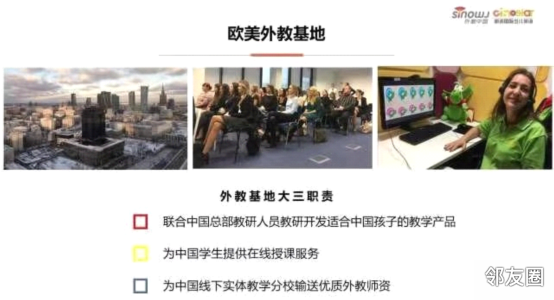 SINOWJ外教中国,年龄段覆盖2-18岁以上及成人各个阶层,打造线上线下互通英语教育体系.K12实体校区+在线英语教育.线下线上固定老师,固定班级的"同学"模式.2007年至今,直营校区从4家增长到33家,加盟校200多家,城市从1个拓展到80个城市.学生累计服务人次达10万人!