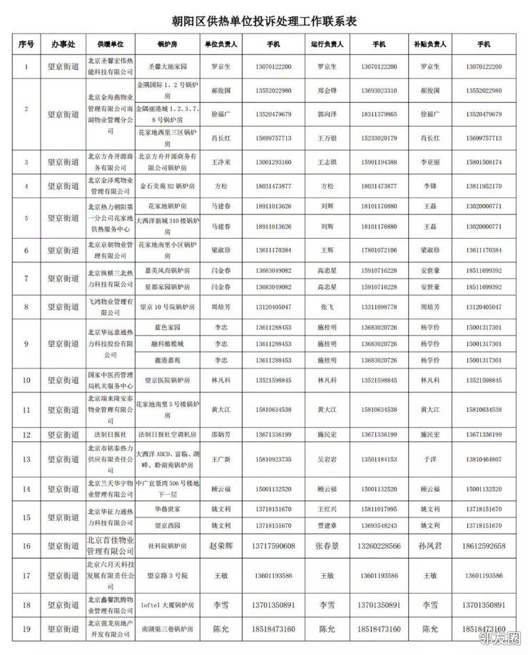 供热单位投诉处理工作联系表请大家参考