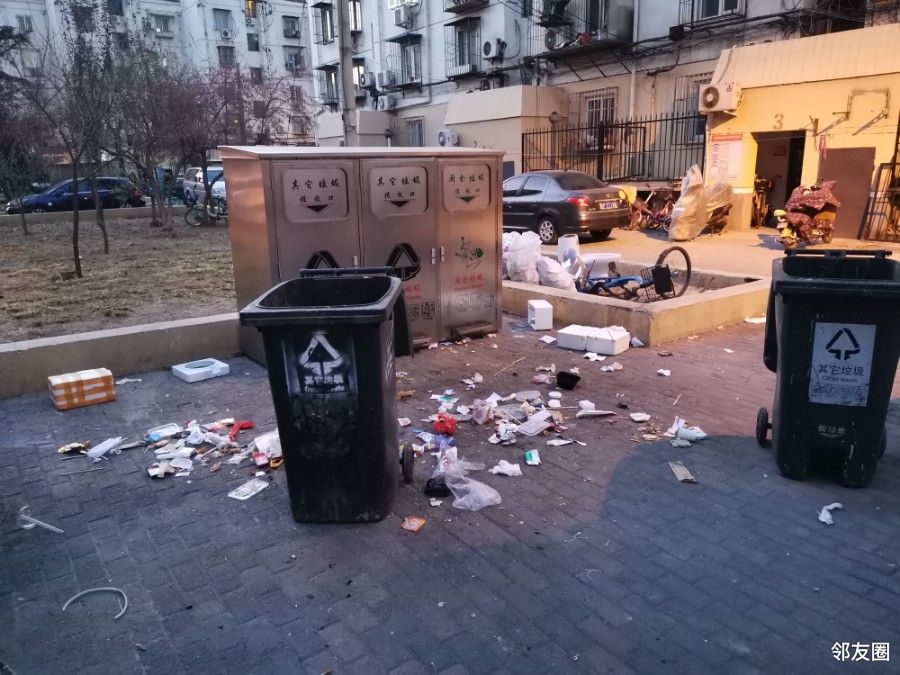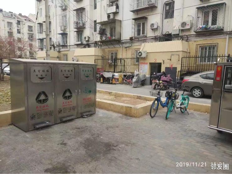 北里17号楼楼前垃圾桶是否能进垃圾柜上锁