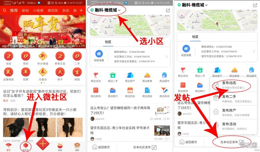 2、进入邻友圈“微社区”,选择自己的小区发帖,添加话题#全民看春晚,社区大拜年#+题目自拟