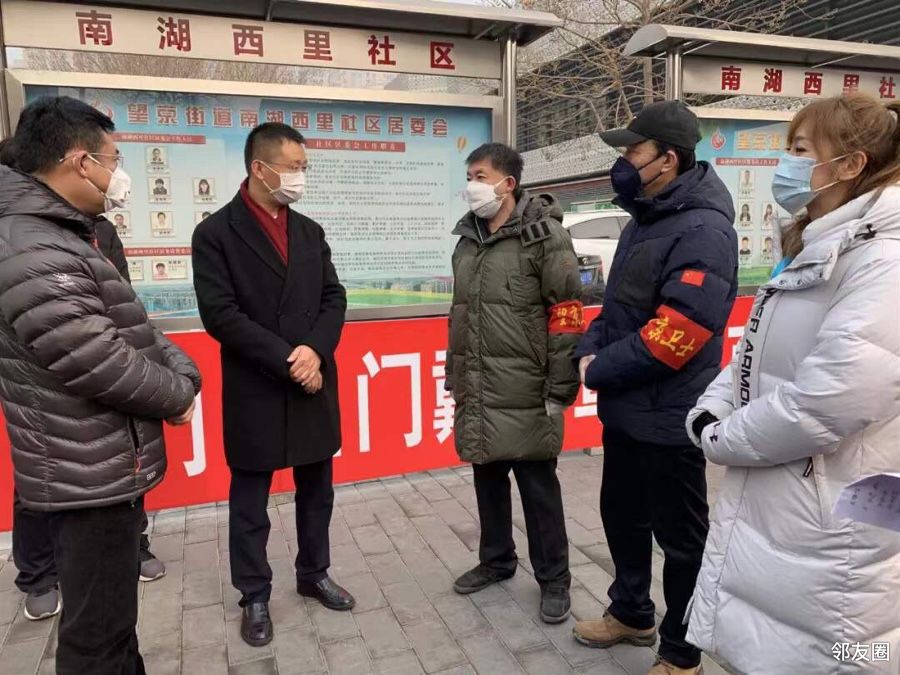 任学良首先亲切慰问了望京街道奋战在一线的社区工作者,并送上了口罩、84消毒液、酒精等疫情防控物资,并要求民建会员在疫情防控期间要做到身子往前站,眼睛往下看,工作跟着干,要与中国共产党保持一致,保持一心,把民建会员积极动员起来,需要物资的时候捐赠物资,需要人手的时候充实人手。随后,他仔细询问了南湖西里社区党委、居委会在开展疫情防控工作中遇到的困难以及梦秀欢乐广场管理方疫情防控工作开展情况。南湖西里社区党委书记李洋洋简要介绍了社区积极落实小区封闭管理相关工作要求以及居家隔离人员服务工作开展情况。
