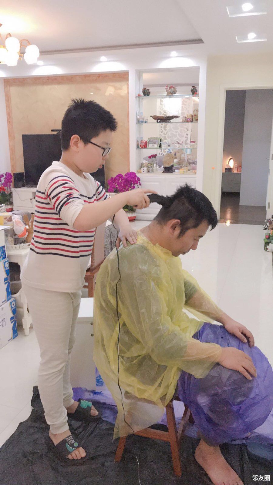 以下为邻友们等不及托尼老师上班,自己理发的照片