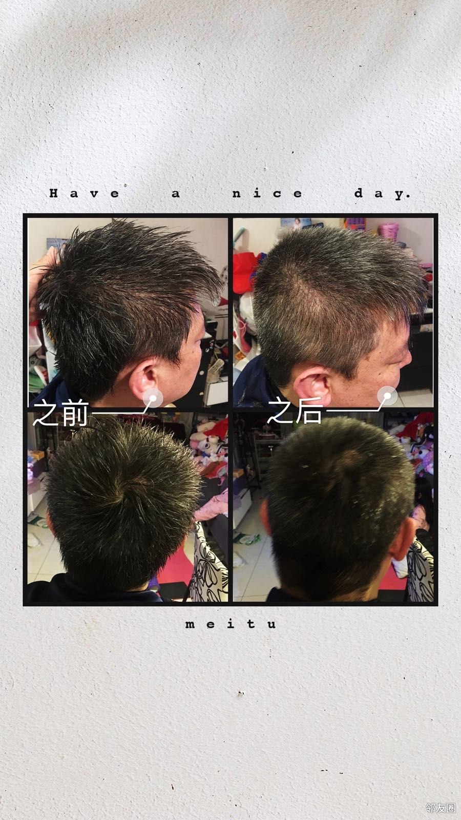 这次疫情发挥了我的特长{:heihei:}让我体验了剪男发,平时他肯定不愿意让我练手{:xiaosheng:}推子坏了,全手工剪完觉得也还行啊,有点意思~满满的成就感{:haozhuyi:}{:haixiu:}