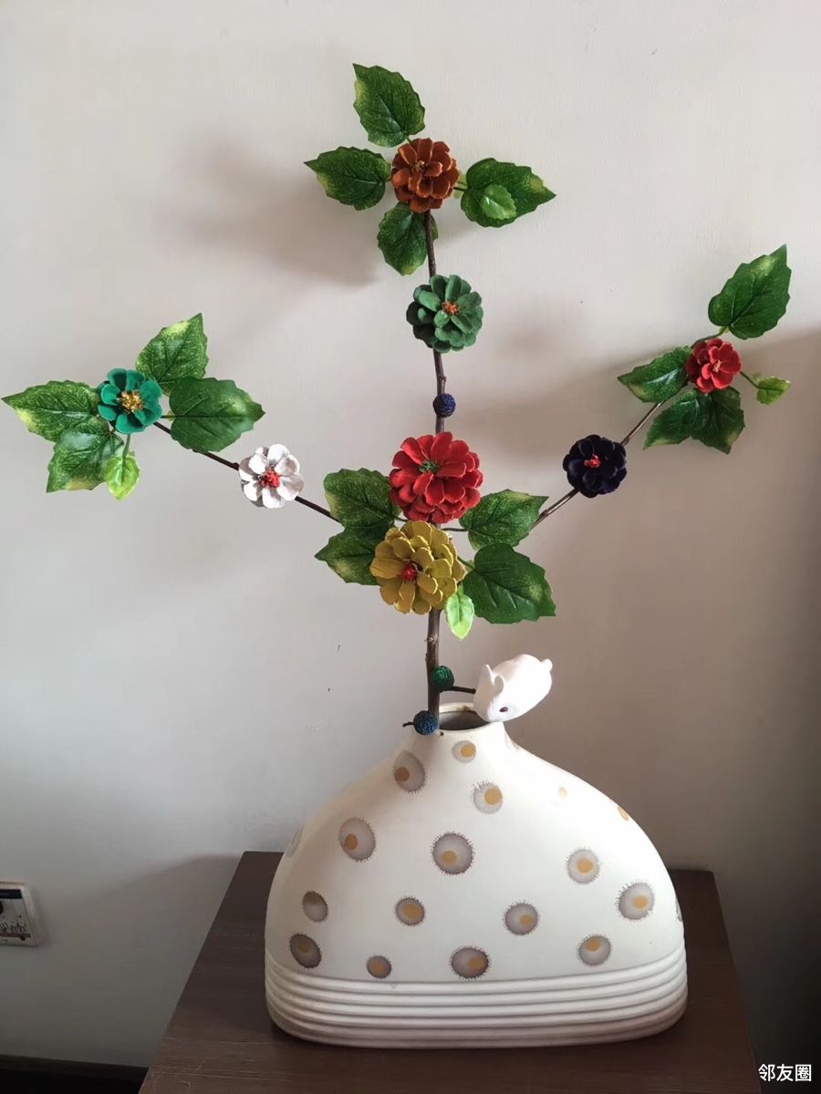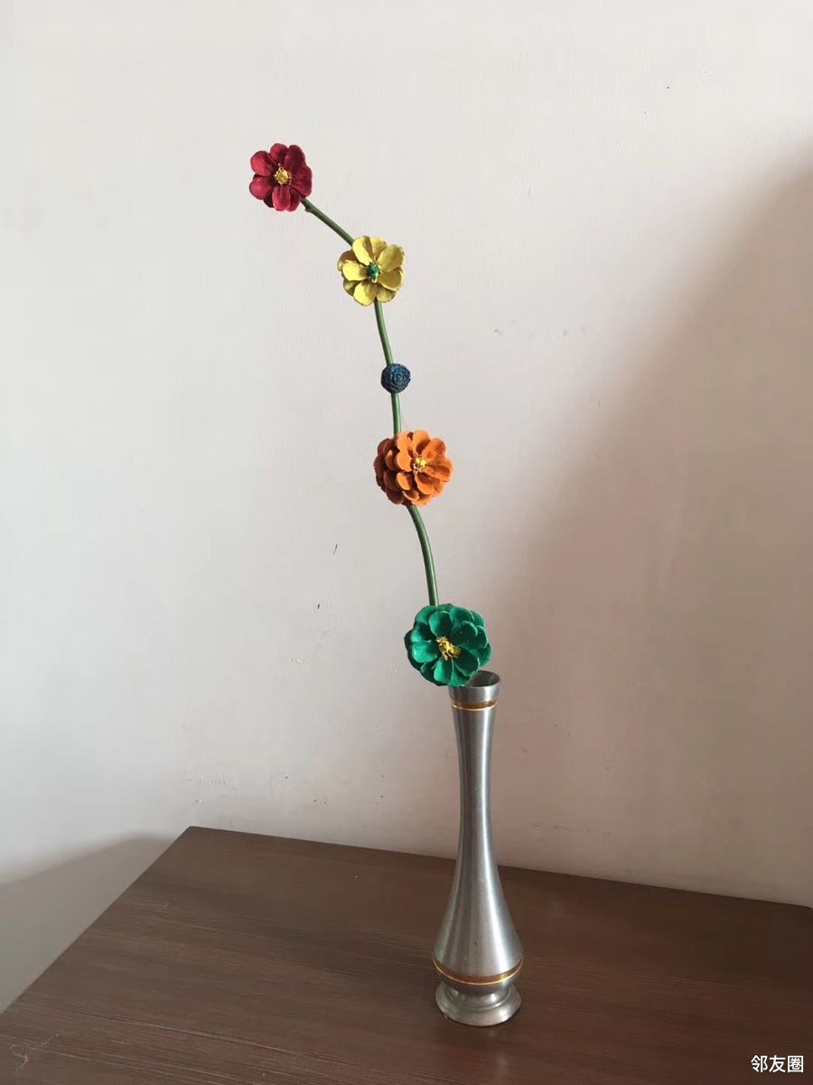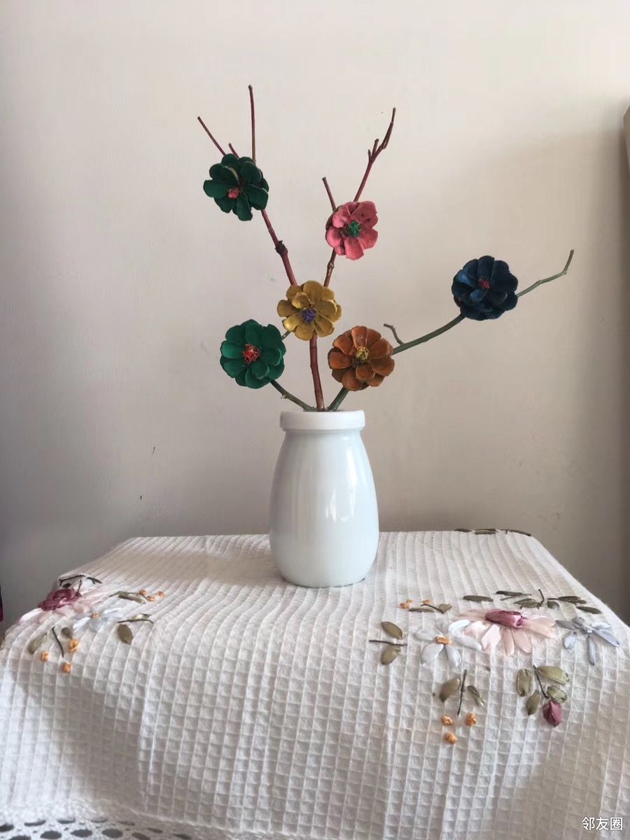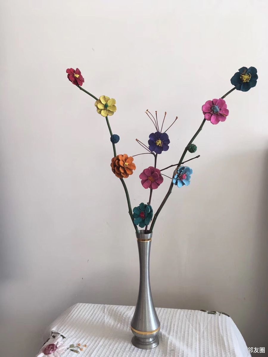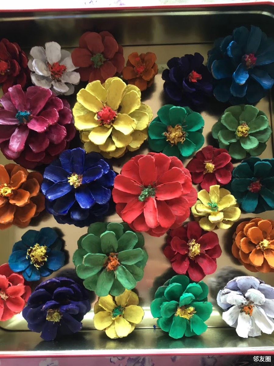 干松塔染上颜色后制作成花朵🌺漂亮吧