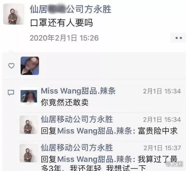 一个朋友在朋友圈劝他:你竟然还敢卖(口罩)?
