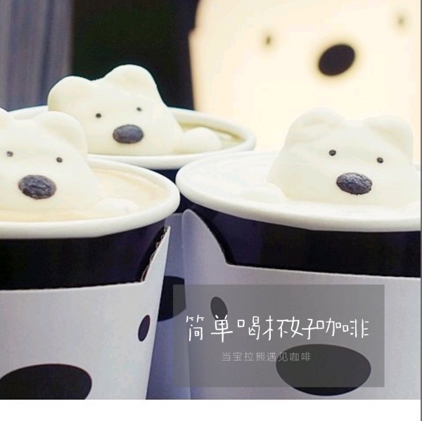 Polar Cafe品牌源自台湾,创始人为周董的舞蹈老师,在台湾拥有一家亚洲面积最大的咖啡馆,红遍半个娱乐圈。专利宝拉熊棉花糖,更是萌化你的心。