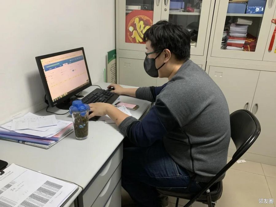 去年8月,他喜得一对双胞胎儿子,本来打算在春节期间好好陪儿子,疫情的到来,彻底打乱了他的计划,他把全部的时间和精力都放在了社区防疫工作上,经常加班加点开展工作。疫情期间,社区工作人员都很忙,大家经常到了很晚还在群里讨论防疫工作,为了不耽误家人休息,他经常一个人抱着电脑躲在厨房里工作。