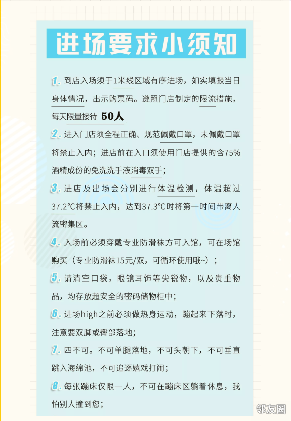 在入场前,需要穿上蹦床专用袜,底部的硅胶凸起防滑极佳,保障运动的安全,收拾好钥匙手机等琐碎物件,一身轻松,然后准备起飞吧!