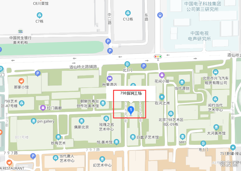 【交通路线】 乘车:乘991路、445路至大山子路口南站下,乘851路至大山子路口东站下; 自驾:导航至北京市朝阳区酒仙桥路2号798艺术区;