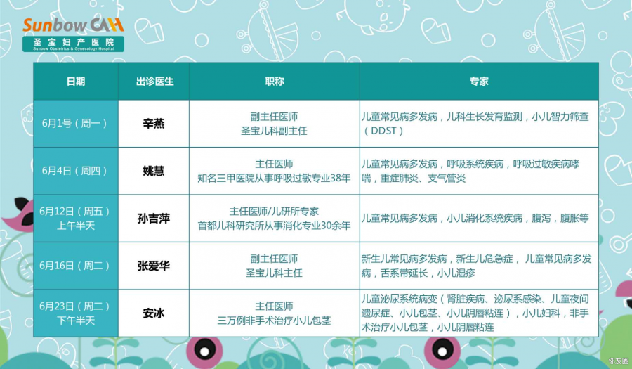 义诊地点:圣宝妇产医院三层儿科