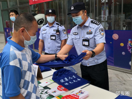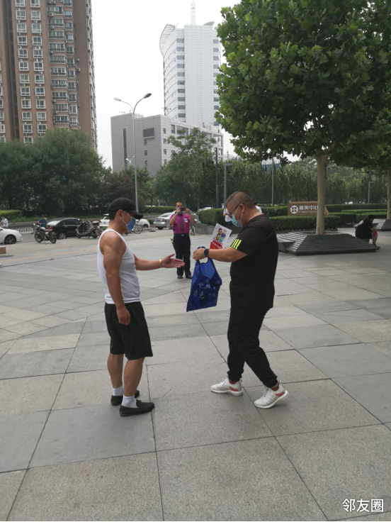 为了响应《朝阳区2020年全民禁毒宣传月工作方案》要求,加深广大群众对毒品危害的认知度。2020年6月23日,望京街道平安建设办公室组织花家地派出所民警、阜荣街社区居委会、新世界百货物业人员等共12人,在地铁望京南站新世界百货广场开展了“6.26国际禁毒日”快闪宣传活动。今年与往年不同的是,因为疫情不能聚集人群,平安建设办公室工作人员拿着宣传品单独发给过往的上班族。