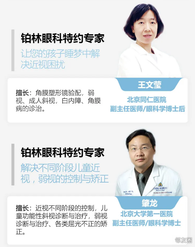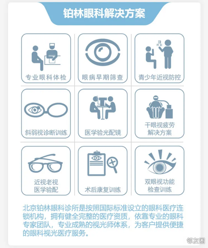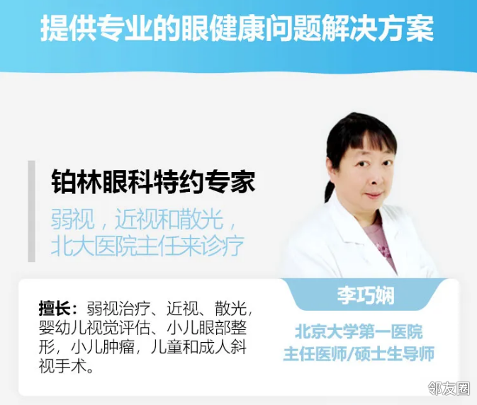 铂林眼科介绍铂林眼科,呵护全家人的眼健康——让人们拥有特别的视光医疗体验,舒适的视力效果,持久有效的视觉健康管理。铂林眼科汇集国内医院主任级医生,为您提供专业的眼科医生、专属的视光师、一对一的诊疗时间、量身定制的眼健康问题解决方案,通过搜集需求、功能检查、评估处方、解决方案、持续随诊(在随诊中再次搜集需求)的眼健康全生命周期服务。