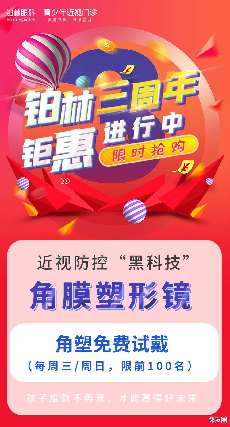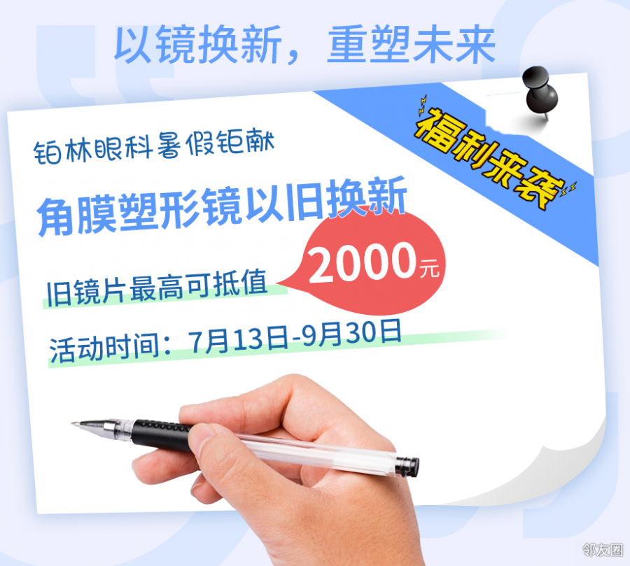 报名成功后,在活动期间,前往铂林眼科选配角膜塑形镜,旧镜片(角膜塑形镜)最高可减免2000元(限100名)。