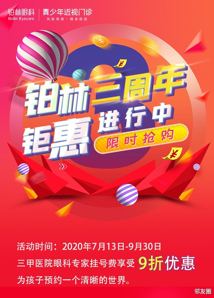 报名成功后,在活动期间,三甲医院眼科专家挂号费享受9折优惠。