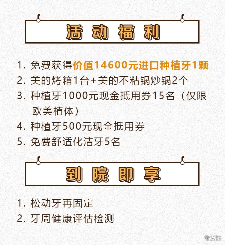 3.种植牙1000元现金抵用券15名(仅限欧美植体)