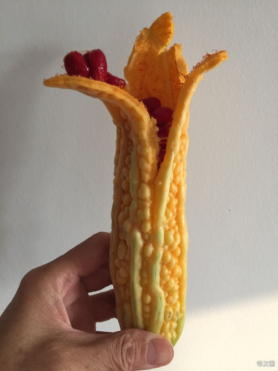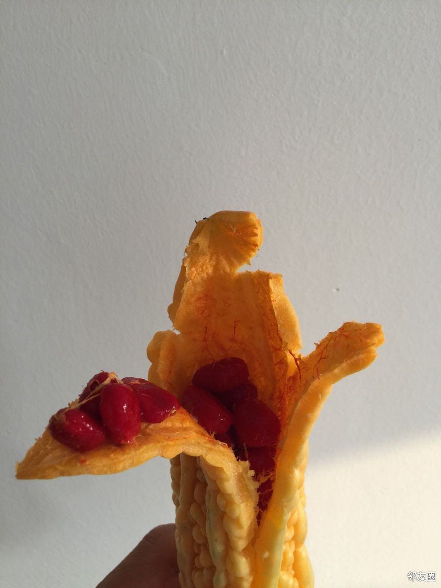 这是改良之前的苦瓜,皮薄籽多个头小。越老皮越软!