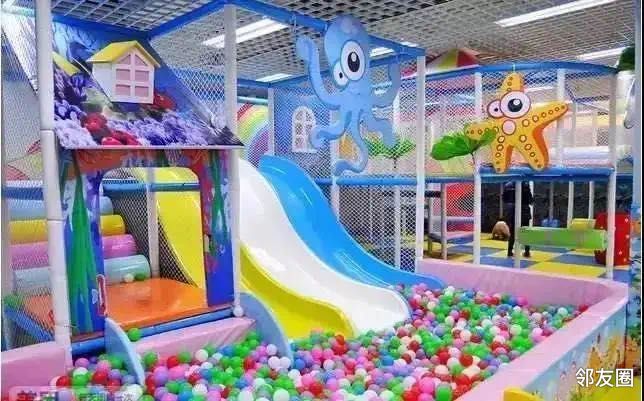 7、儿童乐园这是个小滑梯,滑梯四周堆满了蓝色白色的海洋球池,孩子坐在上面一冲而下,直接掉进球池里,反复几次孩子们也不会感觉到厌烦~