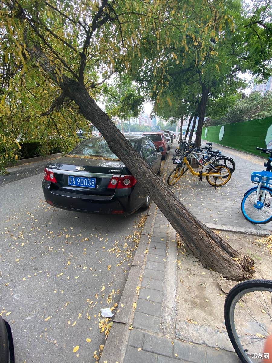 望京凯德对面,里外里大厦边,有一棵树快倒了,砸到一辆车,谁能联系一下快来解救一下车!行人路过也很危险了!
