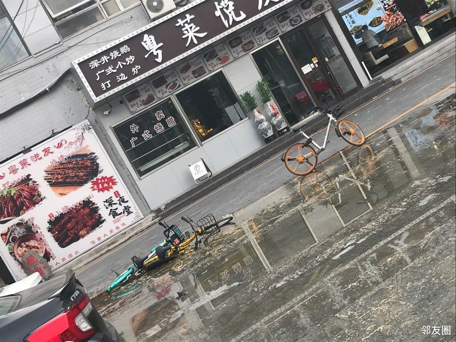望京地铁站C口对面四区饭店门口污水横流,酸臭气扑鼻,原来是污水井堵了,正往上反呢。
