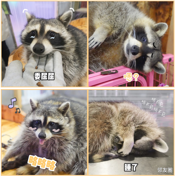 看过来咯~现在要隆重介绍一下这四只可爱的浣熊~