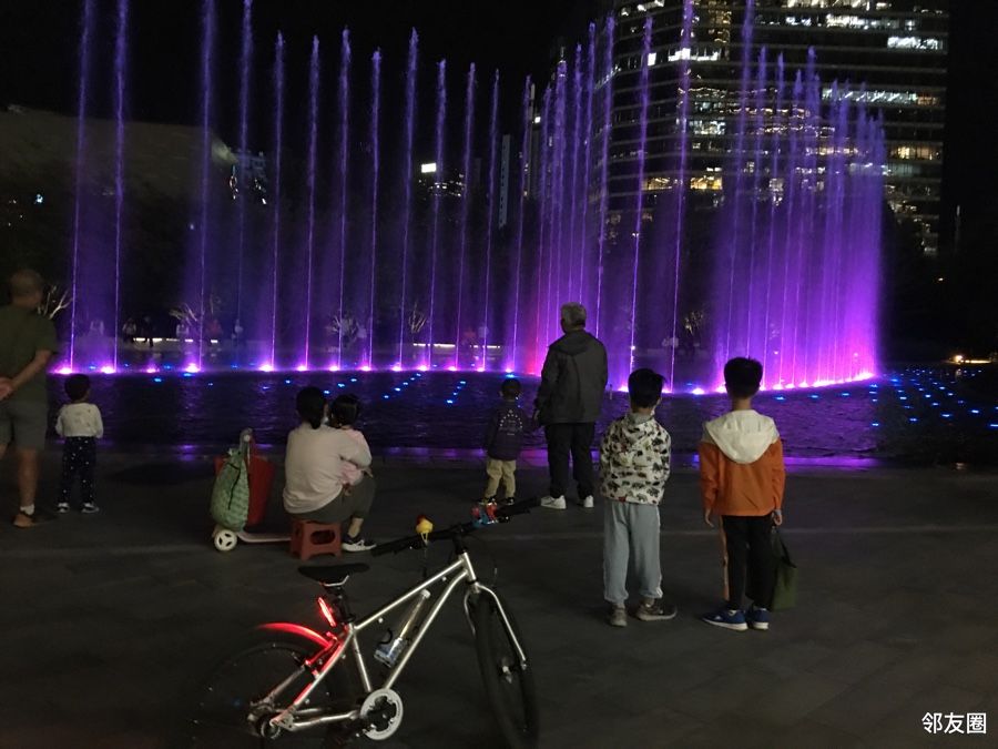 就是音乐喷泉,音乐越高亢它喷的就越高,音乐悠扬时它就随着音乐摇摆起伏,挺好看的。