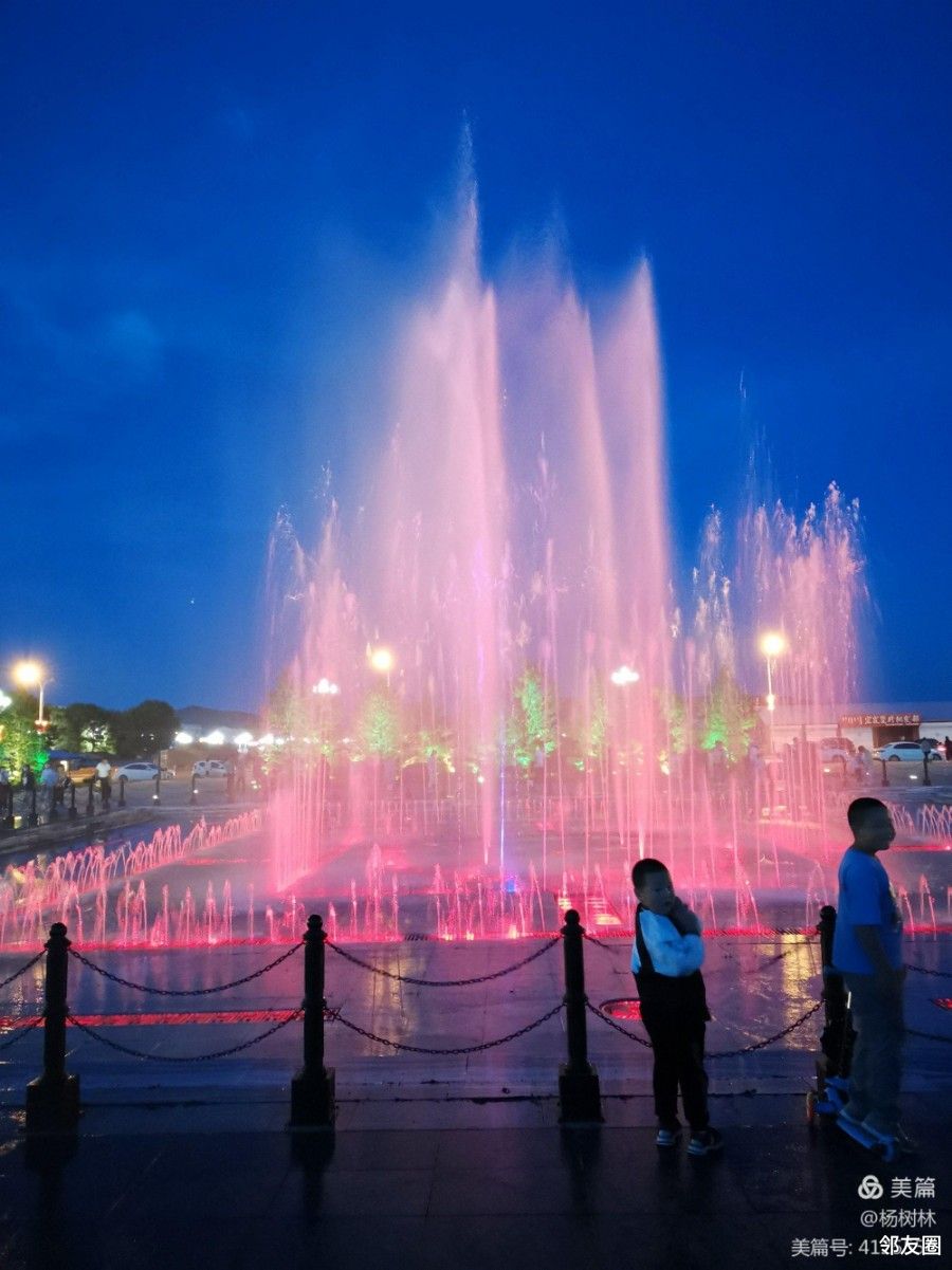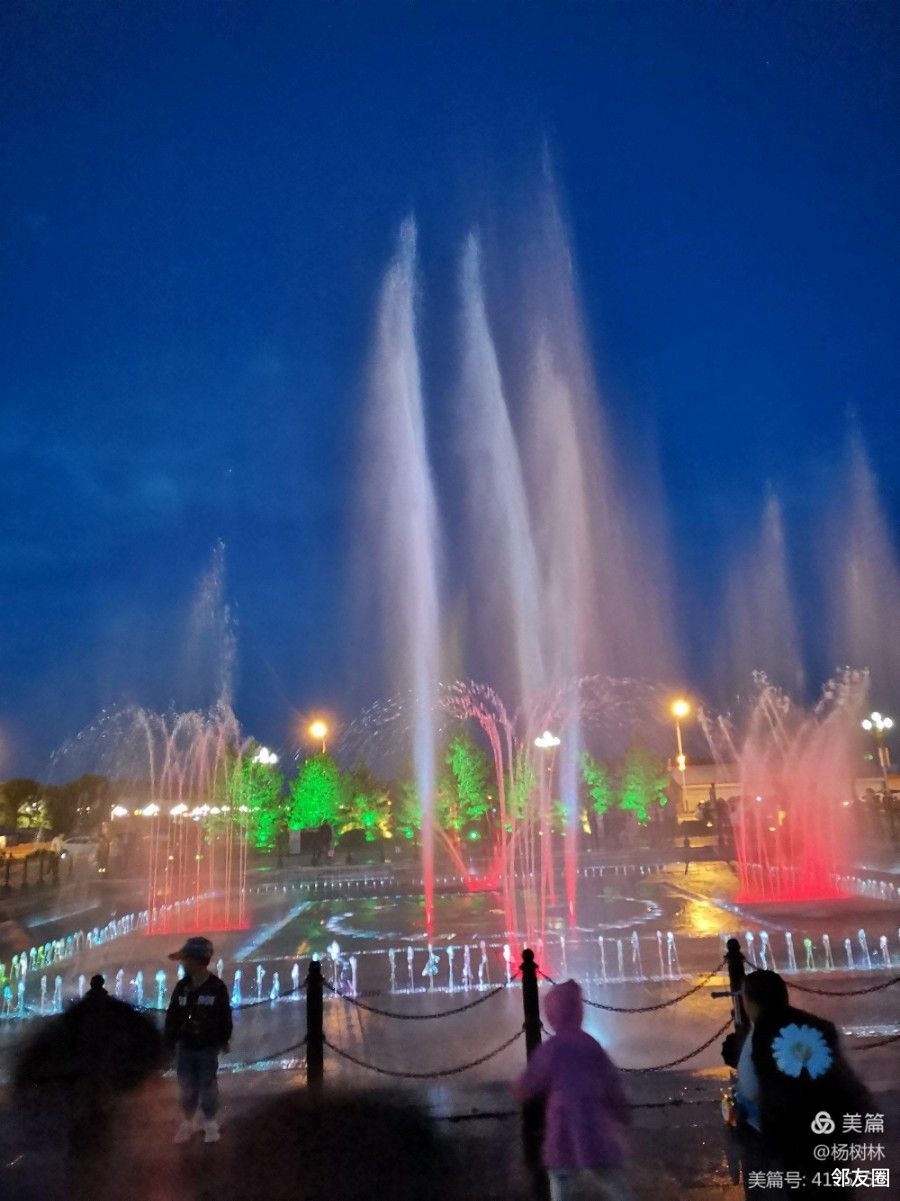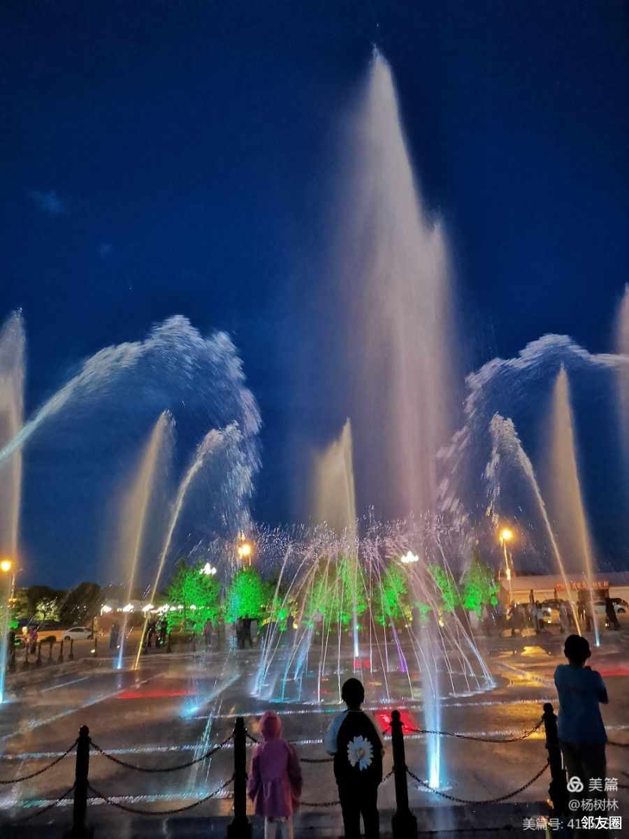 这是内蒙古一个旗(县)的文化广场喷泉,比咱们望京的喷泉怎么样?