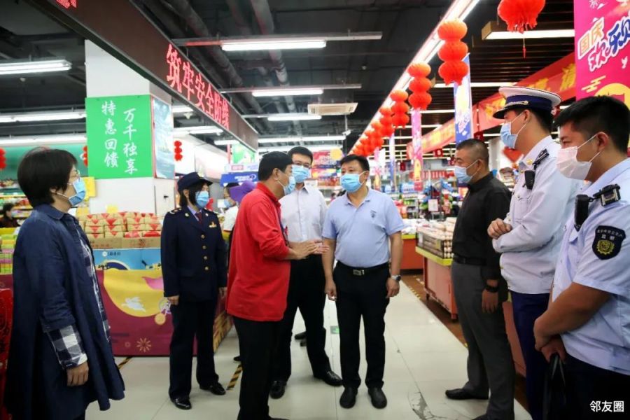在中福百货,对超市农副产品的菜价、水产品的进货渠道、防疫举措进行了查看。他要求继续做好秋冬防疫工作,对扶手、摊位、场地等区域做好消杀,各摊位的农产品要明码标价,保证节假日期间产品供应。他强调安保人员要强化安全意识,以便随时处置突发状况。