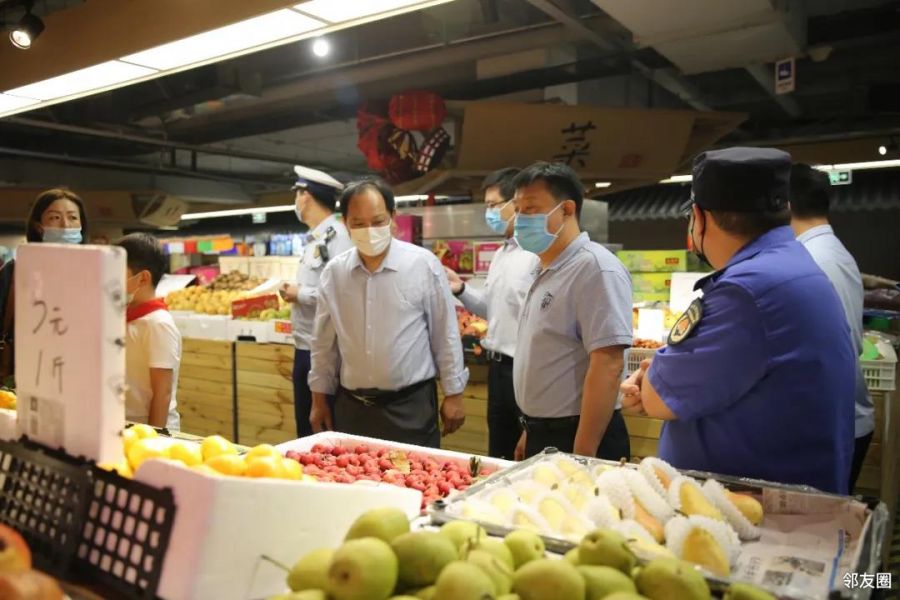 在京客隆超市,查看了超市入口的疫情防控工作,对水产及生肉区域进行检查,询问了京客隆负责人店内消杀、进货渠道等问题,并前往京客隆仓库及周边环境进行检查,他要求在人流量大的区域要及时进行限流,做好疫情防控,同时对检查中发现的问题要求立行立改。