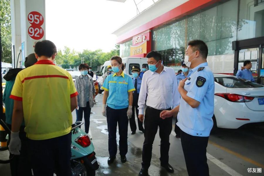 在望京新城加油站,胡建东及各部门现场查看了微型消防站的消防设备、限油区防护措施、公共空间防疫措施、工作人员值班表、员工健康体检报告、安全生产自查记录、节日期间的应急预案等情况。胡建东强调,望京新城加油站属于A类重点单位,要重点加强管理,严格按照规定执行操作,加强安保、防疫力量,培养员工安全意识,要做到第一时间处置、第一时间报告。对于员工未培训上岗、节假日期间雇佣临时工的现象要坚决杜绝,同时要提高节假日期间的服务质量。