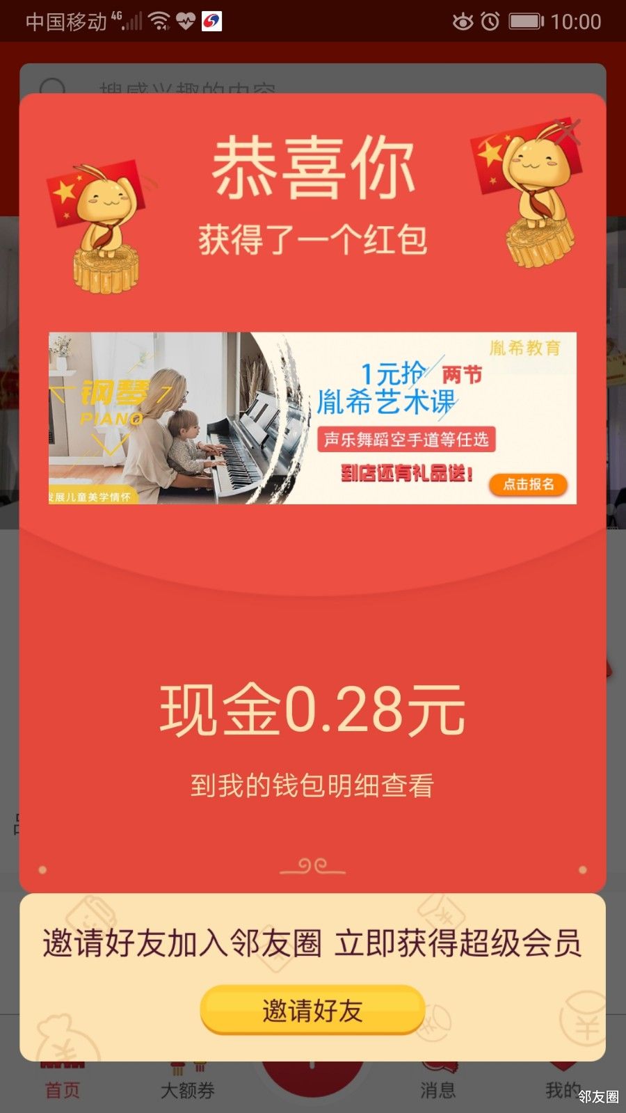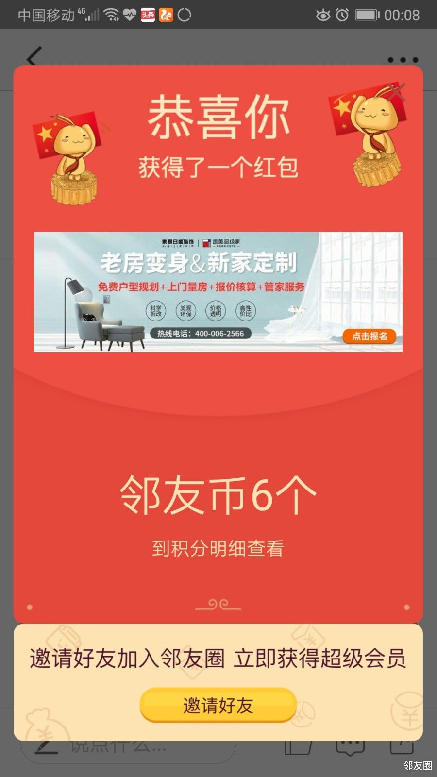 一天三包,每个红包都会带来小惊喜,虽然邻友币多于真金,但邻友币也约等于真金,缺一不可的呢!