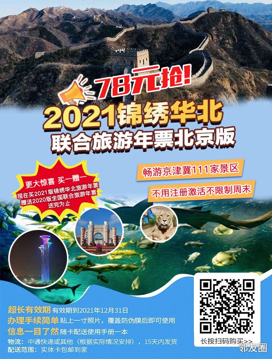 78元含京津冀111家著名景区优惠活动截止到10月31日
