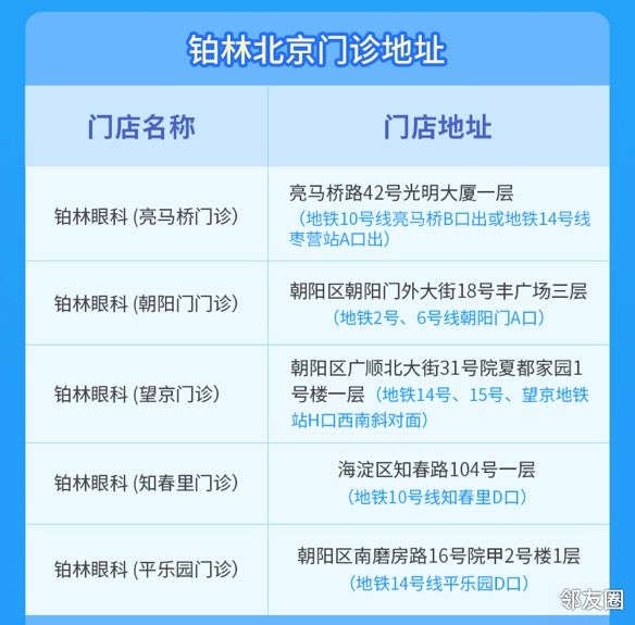 门诊地址:铂林眼科门诊(望京/亮马桥/朝阳门/知春里/平乐园)