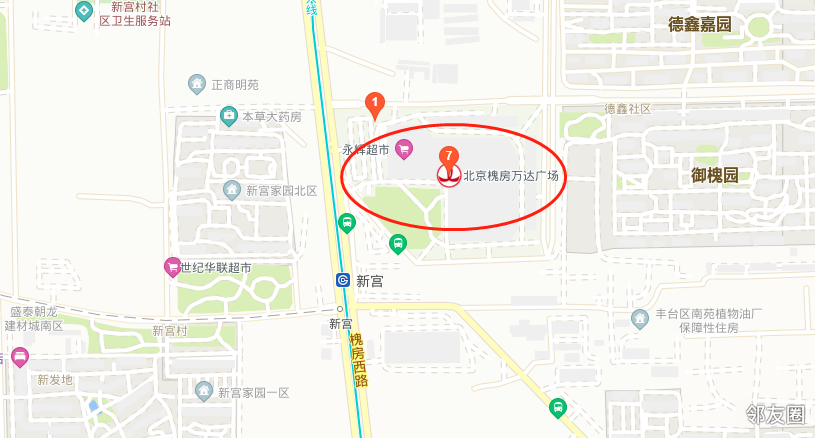 出行路线:(1)导航“丰台区南苑西路39号 槐房万达广场”