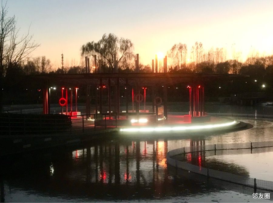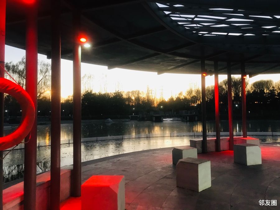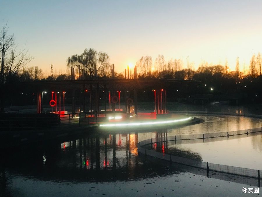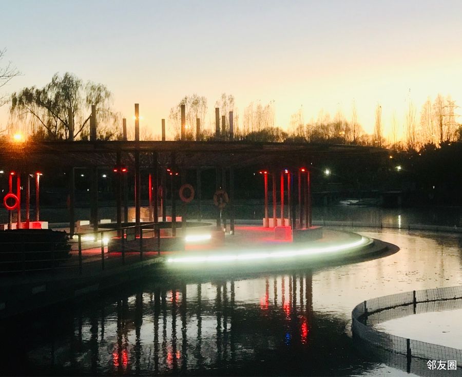 是不是太美了,黄昏时分去望和公园发现这处的灯光秀,彩灯与落日余晖相互呼应,互为比美,静谧的水面映衬出五彩缤纷,真的太美了。